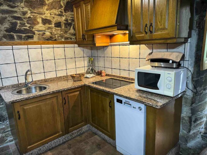 - Baño completo, cocina equipada y salón con chimenea de leña.
