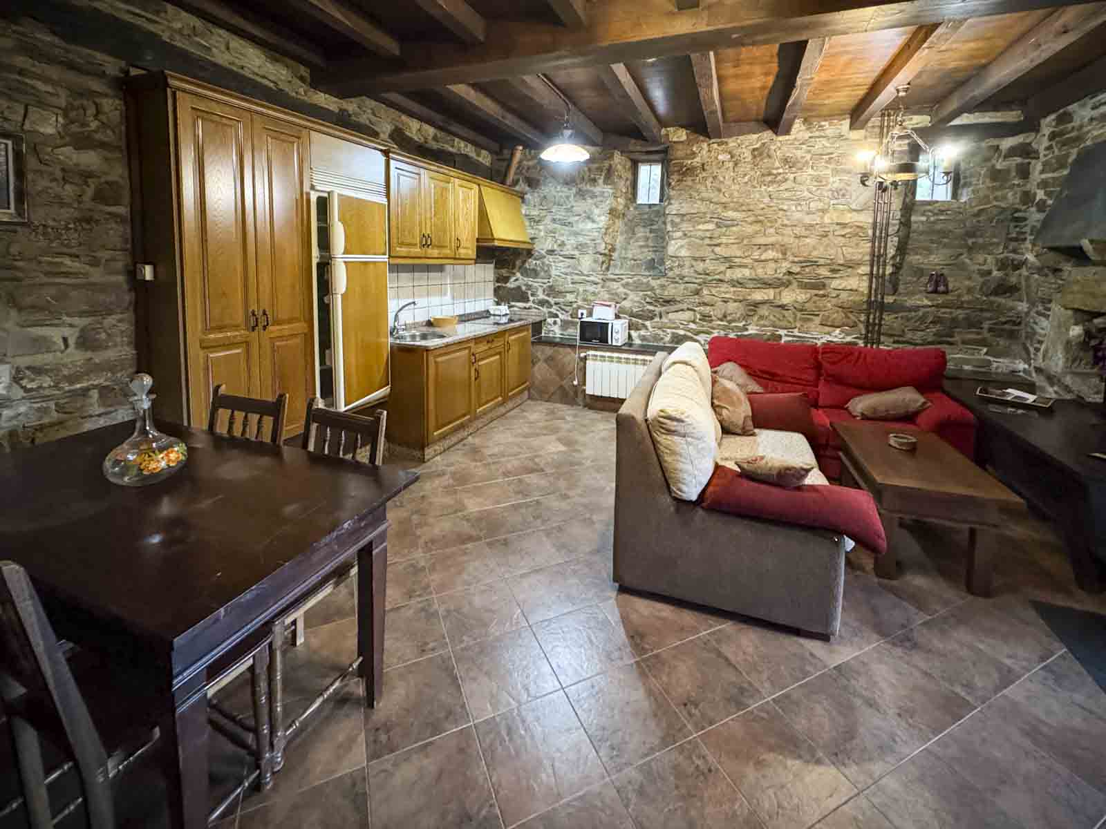 - Cocina equipada y salón con chimenea de leña, televisión, calefacción.